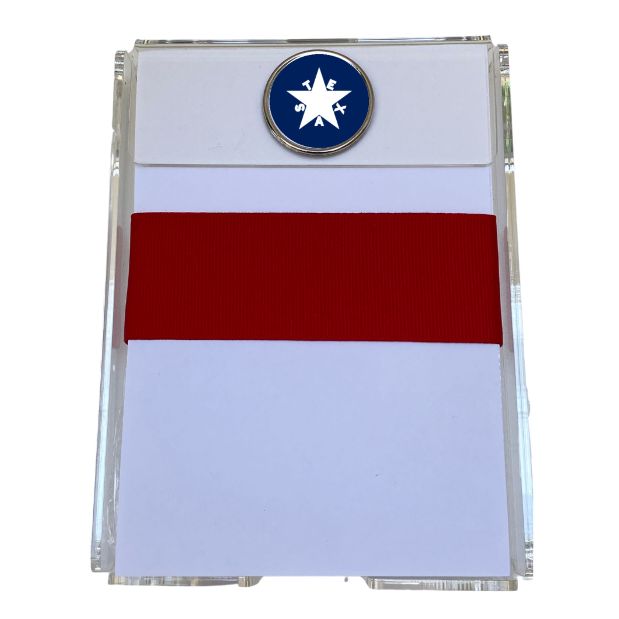 Our custom acrylic notepads feature your logo. The paper is bound with a grosgrain ribbon. Custom guidelines apply. Click to learn more.