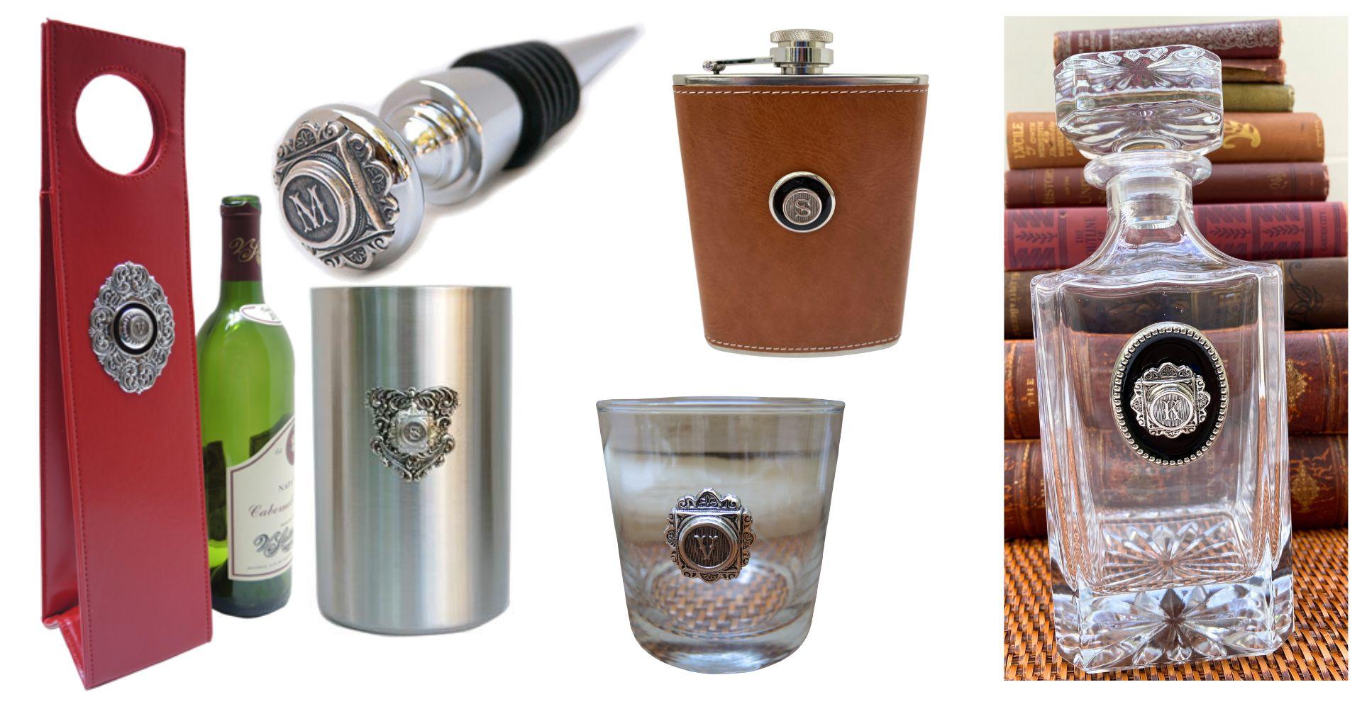 Classic Legacy initial gifts are great choices for groomsmen. Some favorites include the decanters, leather flasks, and bottle stoppers.