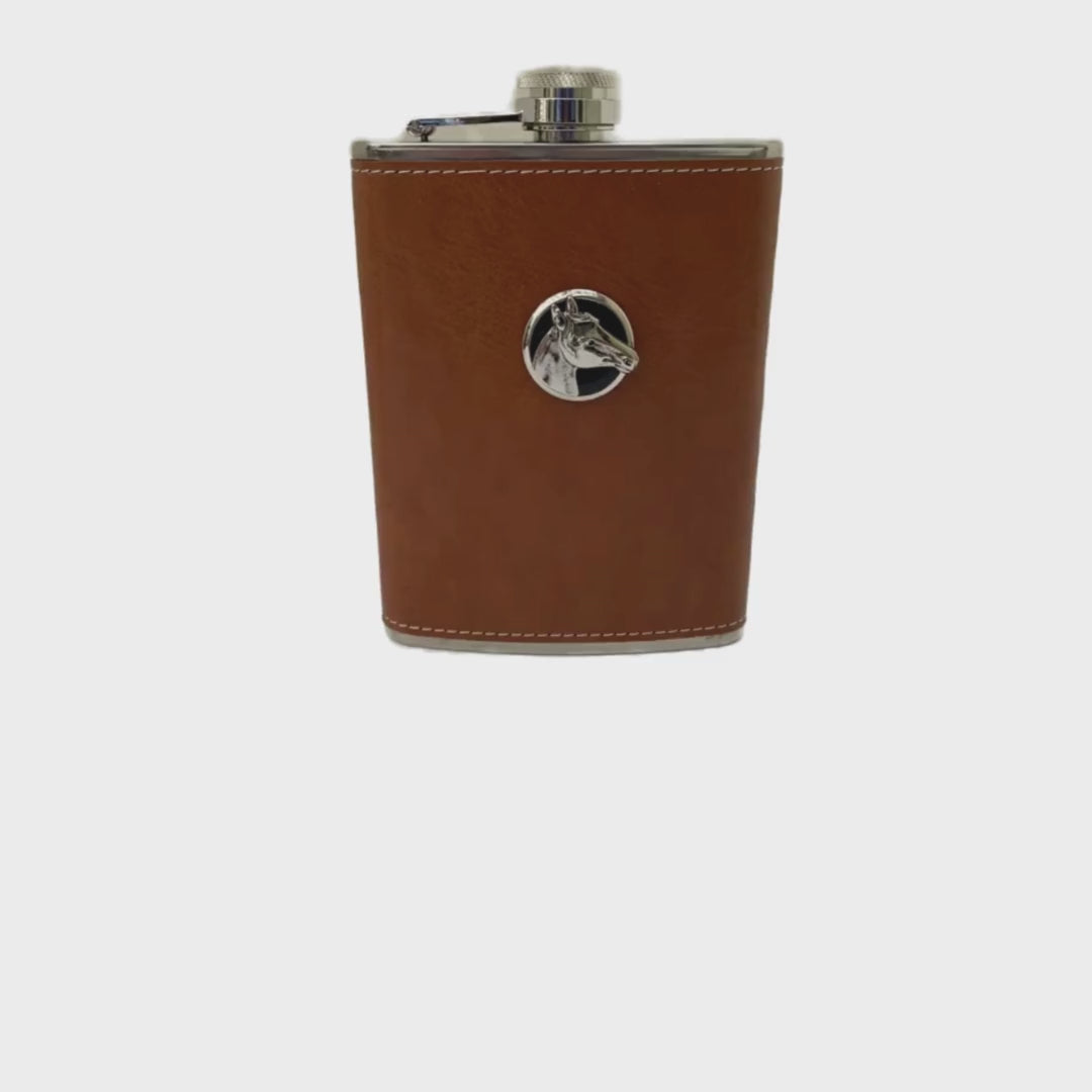 Brown Leather Flask Silver Horse Head