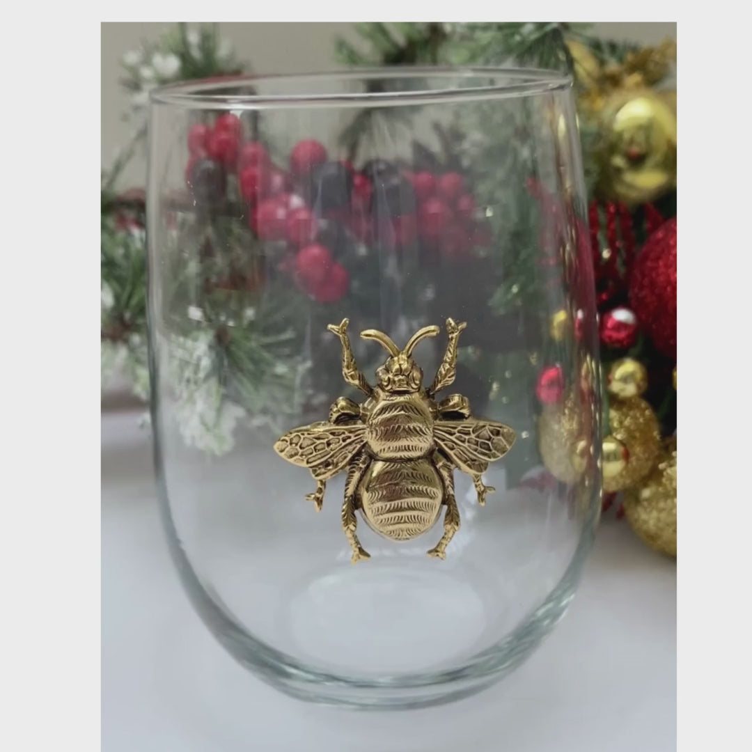 Gold Bee Stemless Wine Glass | Gift for Bee Lover