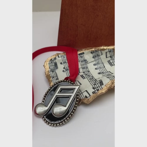 Our music theme oyster shell dish features a classic score of lovely sheet music. We carefully apply the gold gilding to the edges by hand. Each dish is unique since we used real oyster shells. Each shell is from 4" to 5" in length. This elegant gift is packaged in a black suede drawstring pouch. Place is art on a small easel and place in on your bookshelf or desk. Our oyster shell art can also be used as a special jewelry dish. It is a great gift for any music lover.